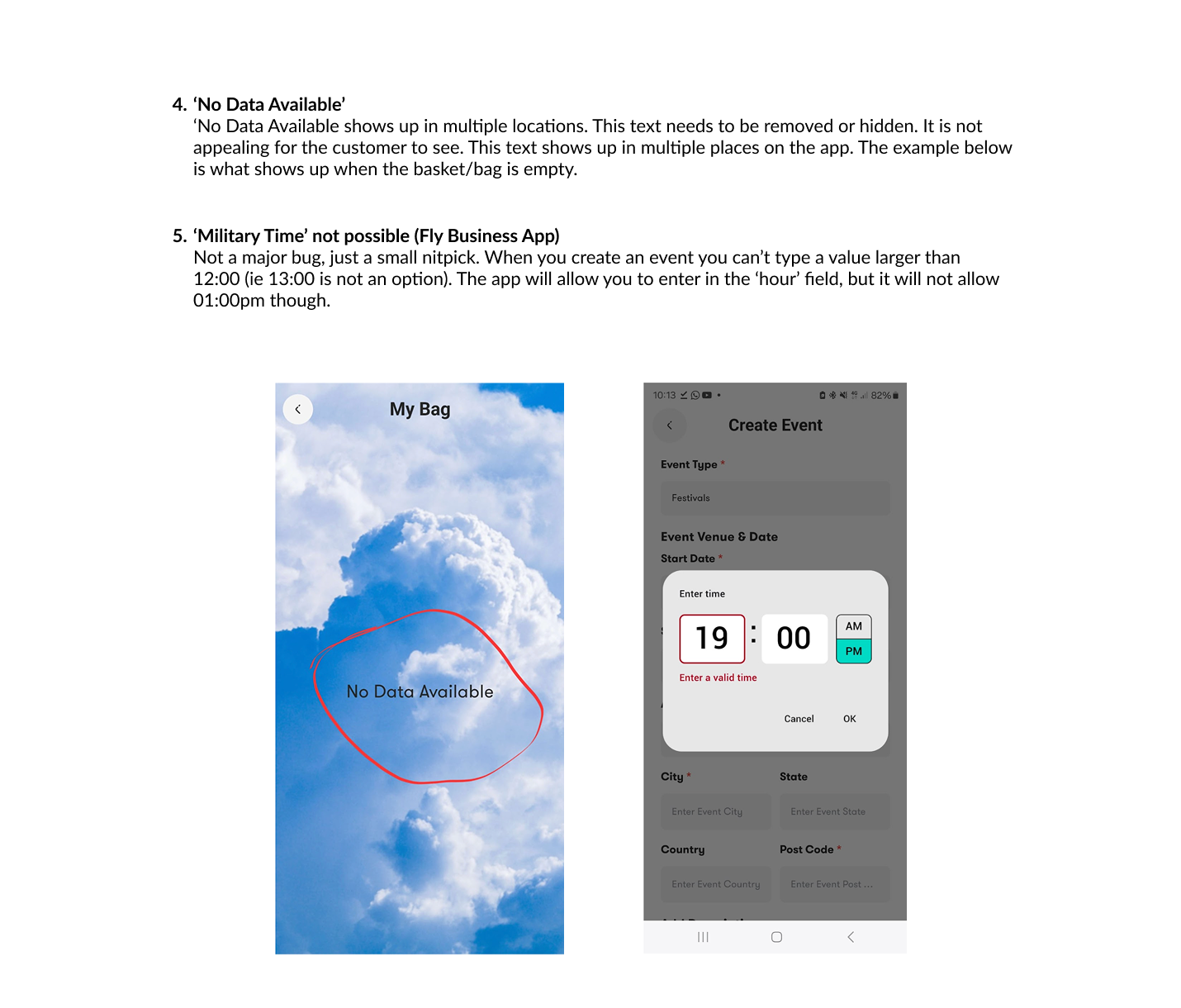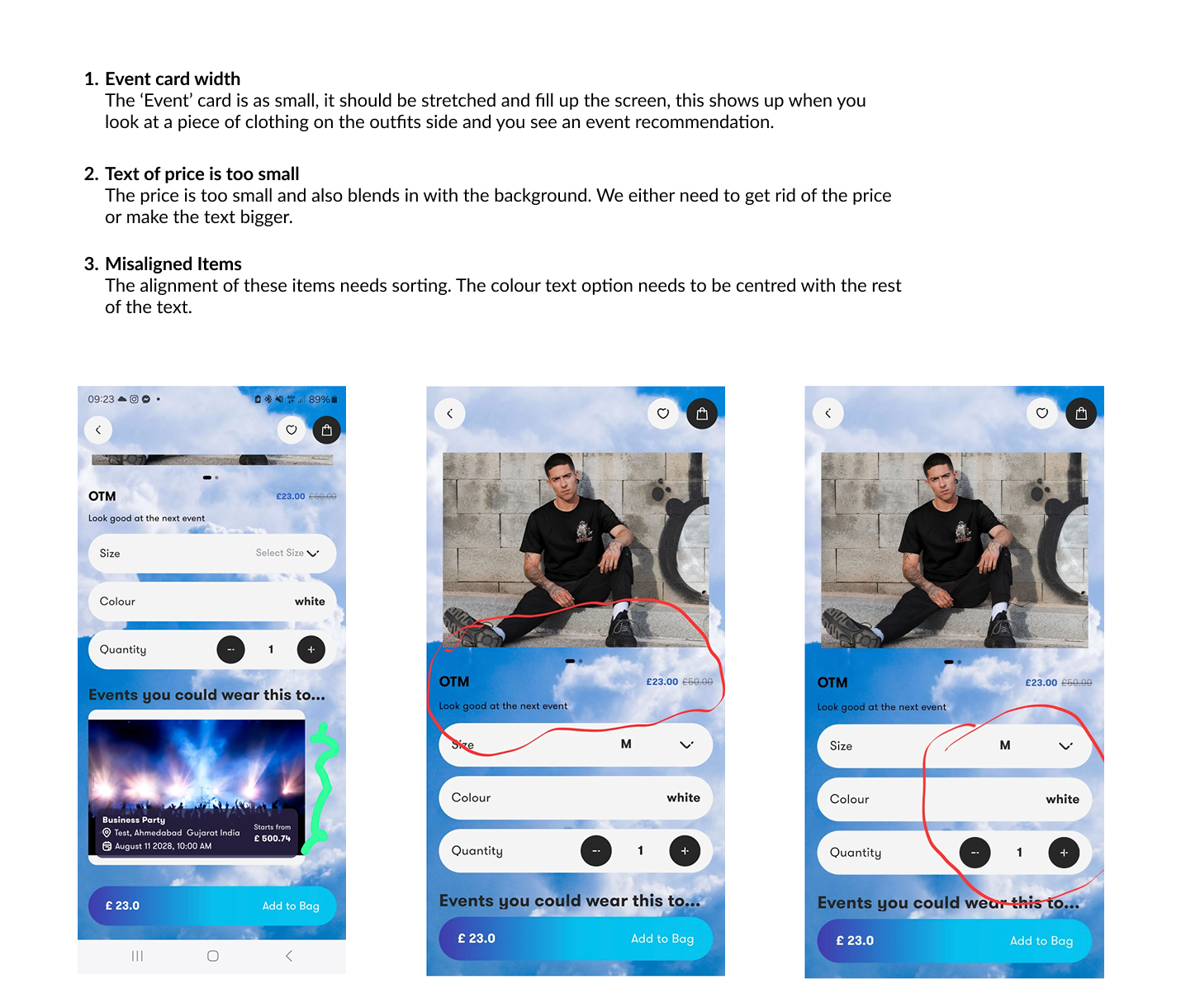 In addition to the usability testing findings I documented, my Senior UX Design colleague shared screenshots with brief notes highlighting further UI/UX changes he noticed. These were separate from the user testing results and were added to the report.