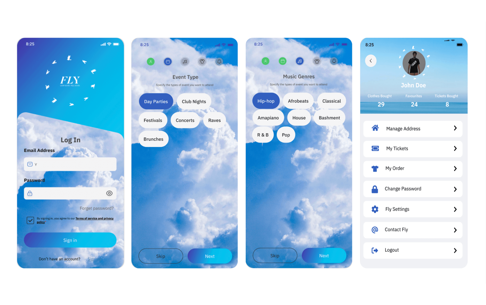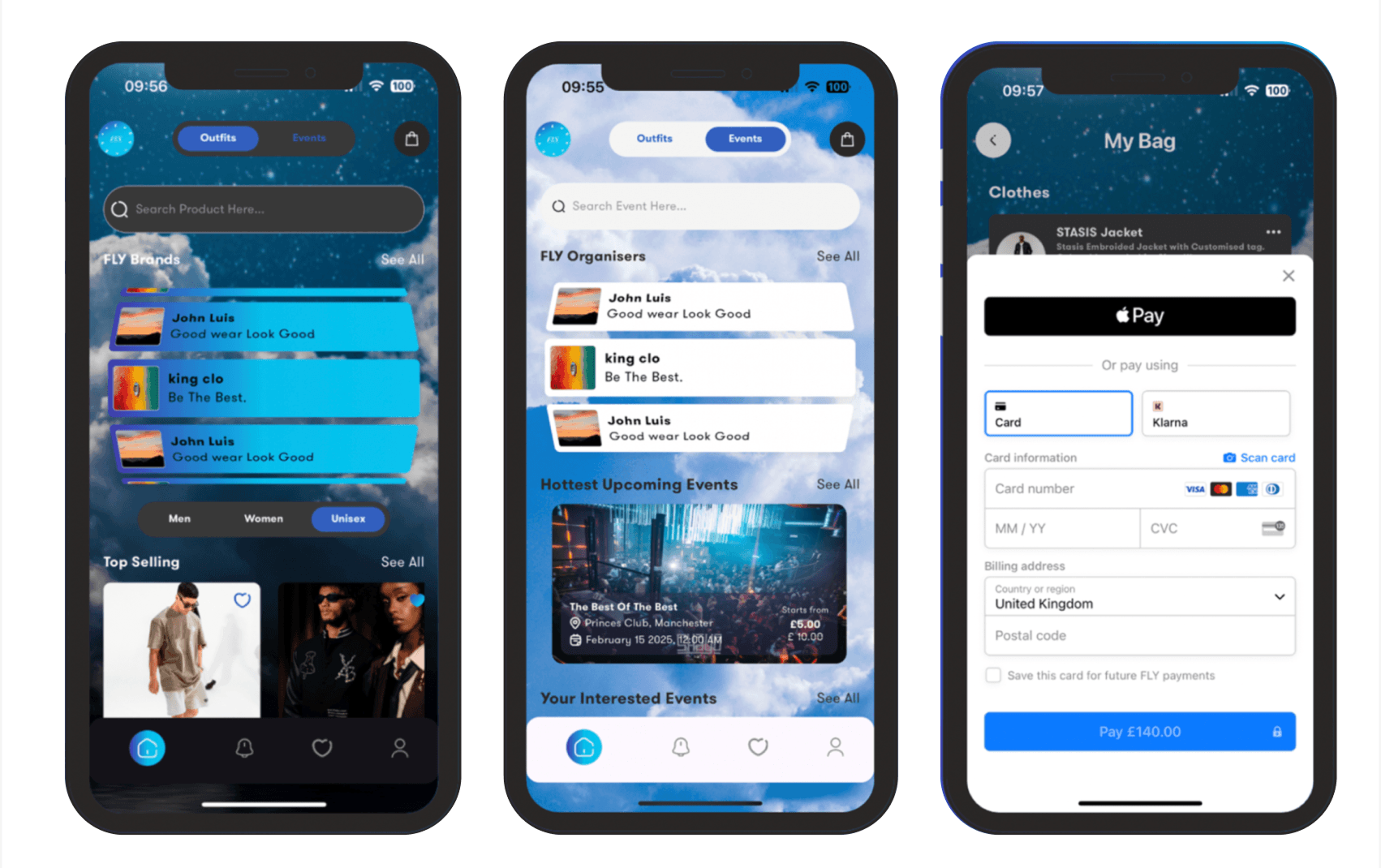 - My Bag: Event categories should reflect Fly's core offering (e.g. nightclubs, festivals)