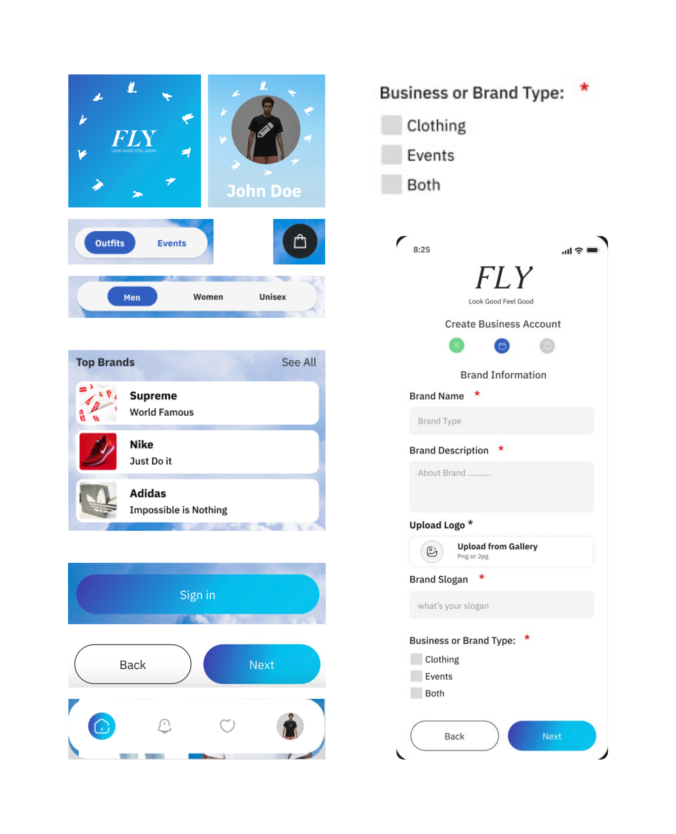 FLY was created to address the stress and uncertainty of choosing outfits for events. Pain points uncovered during research included: