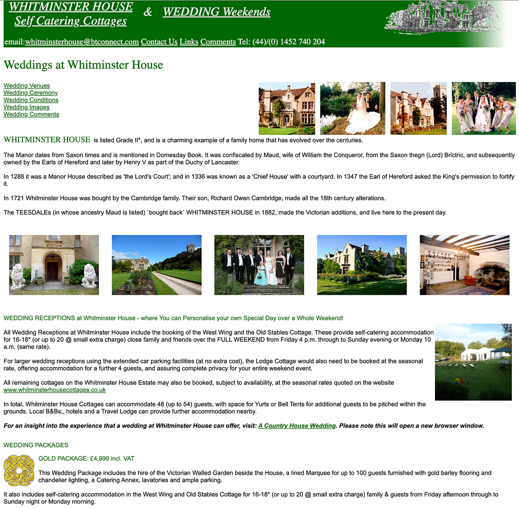 Whitminster House Holiday Cottages is a historic 11th-century manor estate in rural Gloucestershire, offering self-catered holiday cottages, wedding venues, filming locations, and group accommodation.
